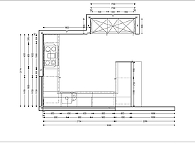Grundriss und räumliche Darstellung einer Landhausküche.